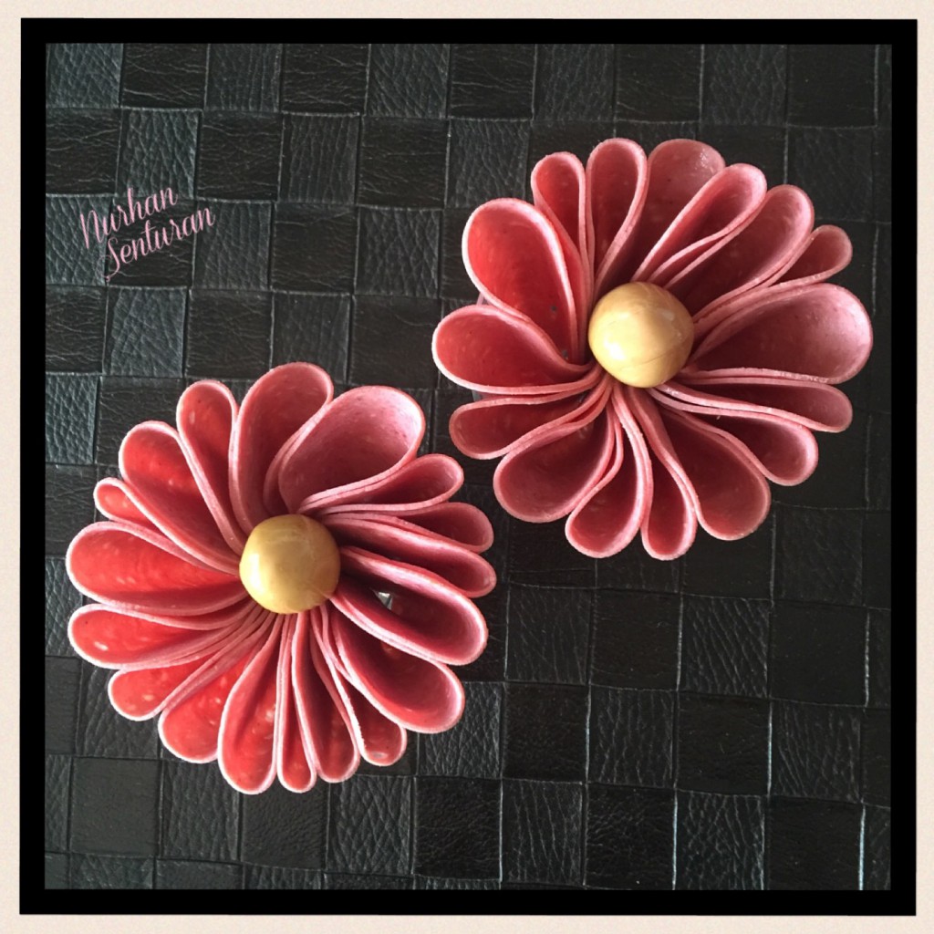 Salamları ikiye katlayıp ufak bir kaseye yan yana yerleştirdiğimizde ortaya bu harika çiçek görüntüsü çıkar.