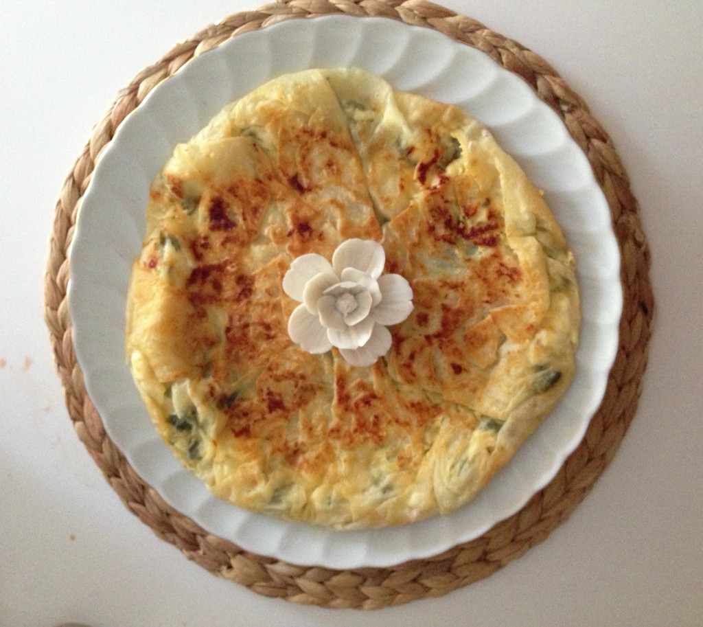 Büyük boy yapışmaz tavamızı sıvı yağ ile yağlayıp bir adet yufkayı fotoğrafta görüldüğü gibi serelim.